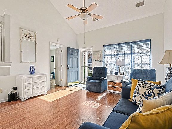 Welcome home to 844 Sheridan Rd, a beautifully maintained townhome located in the sought-after Sawgrass East community of Carolina Forest. This spacious 3-bedroom, 2.5-bath residence offers a thoughtfully designed floor plan that provides both comfort and flexibility for full-time living, a second home, or an excellent investment opportunity. The inviting living area features vaulted ceilings and updated flooring throughout, including brand new carpet, creating a bright and welcoming atmosphere ideal for entertaining or relaxing. The kitchen is a true highlight of this home, showcasing granite countertops, a tiled backsplash & center island. Adding tremendous value and peace of mind, the kitchen is outfitted with a BRAND NEW dishwasher and BRAND NEW refrigerator, making this home truly move-in ready. The primary suite is conveniently located on the main level and features a private ensuite bath with double vanities. Upstairs, you’ll find a well-sized guest bedroom, a full bath, and a versatile third bedroom or loft space with its own walk-in closet, perfect for use as a home office, bonus room, or additional sleeping area. Enjoy quiet mornings and relaxing evenings on the screened porch overlooking a peaceful waterview, providing a serene outdoor retreat. Additional upgrades and features include a new roof, newer HVAC system, outdoor storage closet, low-maintenance vinyl siding, and ample storage throughout. The Sawgrass East HOA provides exceptional value, covering water and sewer, trash service, exterior insurance, and community amenities, including a clubhouse and swimming pool. Ideally located near top-rated schools, shopping, dining, golf courses, and just minutes from the beach, this home offers the perfect blend of comfort, convenience, and coastal living. Don’t miss this exceptional opportunity — schedule your showing today!