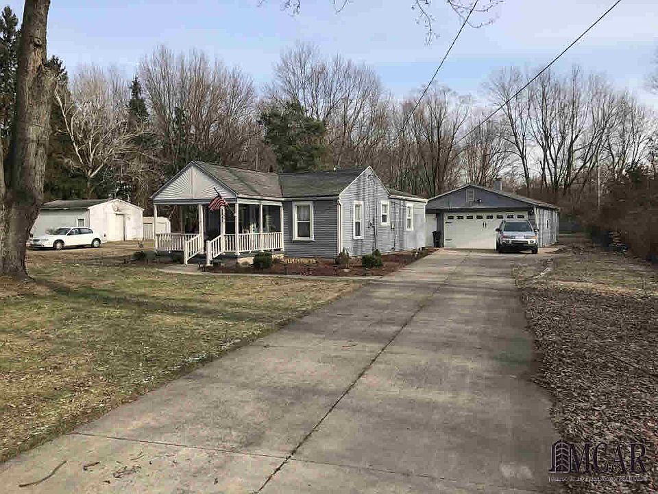 Charming home with open concept kitchen and living room has electric fireplace with built-ins. Lots of storage in the wall of cabinets in the updated kitchen that boasts tile backsplash and 5 burner gas stove that stays. The updated bathroom has beautiful double sinks. The sunroom offers extra entertaining space! Nestled on 1/2 acre the lot is partially fenced and has insulated 2 1/2 car garage with woodstove with extra shed on the back for even more storage.
