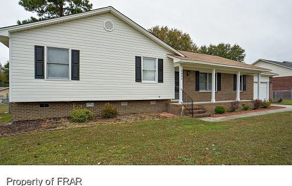 - Lots of sq.ft for the money, Freshly painted inside and out, new roof 10/2017, spacious 3 BR, 2 Bth home with large formal living room and dining room, huge den w/fireplace, sizable eat-in-kitchen, bi level floor plan that flows well into bedroom area. Low maintenance brick veneer and vinyl exterior, updated HVAC, concrete patio and fence backyard. Located in convenient neighborhood to shopping, access to Fort Bragg yet off the beaten path, Elementary school within walking distance of home.