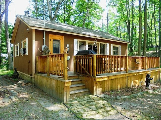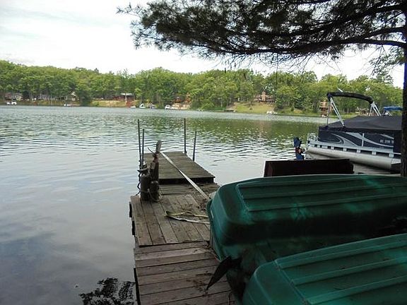 Cabin with deeded waterfront access on no-wake Crooked Lake. Dock included. Cabin with open plan, two bedrooms, 3/4 bath, wall furnace, front deck. Swimming and boat launch at Mitchell Township Park.