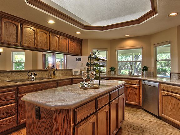 The minute you walk through the front door of this custom single story residence the quality of this property becomes evident. From the crown moldings to the planked hardwood floors nothing has been overlooked. The updated kitchen which overlooks the family room is a cook's dream. Granite counters, large center island, pantry, top of the line Bosch appliances, spacious adjoining nook all complete this picture. This floor plan provides a guest bedroom and bath off the kitchen nook. This feature offers extra privacy. The other three bedrooms are spacious including a fantastic master suite with a gorgeous fireplace and fantastic recessed fan and lighting area in the ceiling. The garage is an oversized three car garage offering plenty of room for "toys" and projects. A canopy of oaks and lush landscape along with a beautiful in-ground pool and spa create a lovely serene setting on this almost 1/2 acre lot.