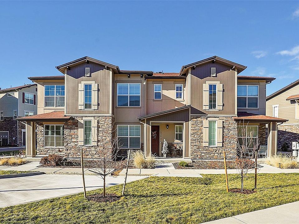 Welcome Home to the Verona Townhomes! This sparkling townhouse was just built last year in 2022 meaning it is nearly new but not at new prices! Immediately upon entering you will notice the stunning great room style layout of the main level gently transitioning you from the living room into the formal dining space and kitchen. A sunny and spacious living room greets you upon arrival showcasing rich laminate flooring that carries you throughout the main level. Next venture into the dining room and kitchen where you are introduced to brilliant finishes in the abundant cabinetry for your every storage need along with ample Quartz topped counter space including the center island making meal prep a breeze. Upstairs you are welcomed by a warm and tranquil owner's suite offering plenty of space for many furniture design options along with a private en-suite bathroom which features and oversized walk in shower and dual sink vanity, you will love the generously sized walk in closet of the owner's suite as well. Two generously sized additional bedrooms, a secondary full bathroom, and the laundry facilities with washer and dryer included complete the upper level of the home. You will love living in Verona where you can opt outside and live your best Colorado lifestyle just minutes from your new home at McLellen Reservoir where you can enjoy biking and jogging around the reservoir along with plenty of bird watching. Many local eateries and the movie theater are found just East of your new home on c470 such as the Lazy Dog or Main Event where you can take in an evening of fun just minutes from home. Also arrive at the Park Meadows shopping center within 15 minutes where you can shop until you drop and enjoy fine restaurants like Seaasons 52 or every lifestyle amenity from Costco to IKEA and more. Residents of Verona also enjoy the award winning education system of Douglas County Schools. ***This home is a short sale property, this will be an extended closing of 90+ days.***