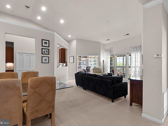 Located in the popular age-qualified 55 and better gated community of Legacy At Cherry Tree, this light-filled condominium offers a secure-entry elevator building with 1,350 square feet of living spaces offering 2 bedrooms and 2 full baths. A welcoming foyer invites you inside to find a neutral color palette sure to complement any decor, crown molding, an open dining room flowing into the living room accentuated by a cozy gas fireplace, built-ins, and French doors opening to a private study. With a stunning view of the bright interiors, the chef’s kitchen boasts plenty of 42" cabinetry, granite counters with harmonizing tile backsplash, a pantry, and stainless steel appliances. Owner's suite includes plenty of closet space including a walk-in and secondary wall closet, a vaulted ceiling, a breezy lighted ceiling fan, a private bath with double vanity, and an oversized step-in shower with a double head and bench seating. Lovely glass enclosed porch drenched in natural light offers farm Vista views and an amazing cross breeze when screens are open. Community boasts a lovely courtyard with gazebo, a clubhouse and gym, and a convenient location just minutes from Fulton and Maple Lawn shopping, major commuter routes, dining, and more!