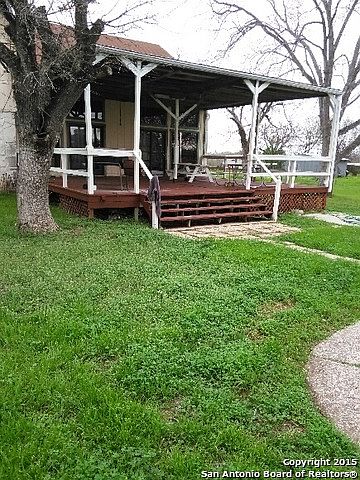 COUNTRY LIVING CLOSE TO THE CITY. OVER 2 ACRES WITH LARGE TREES, WORK/STORAGE SHED COMPLETELY FENCED. ROOF COVERING (SHINGLES REPLACED APPRO 5 YRS AGO) TWO AC UNITS (ONE OUTSIDE UNIT REPLACE IN LAST TWO YEARS. WAS TENANT OCCUPIED AND TENANT REMOVED SOME FLOOR COVERING. HAS HARDWOOD FLOORS THAT COULD BE REFINISHED. NEEDS LITTLE WORK BUT JUST COSMETIC. INGROUND POOL IN GOOD CONDITONABOUT 8 YEARS AGO. LARGE DECK. PRICED 22K BELOW BEXAR APPRAISAL. FIRST 6 PIC BEFORE TENANT REST CURRENT BUT SHOWS POTENTIAL