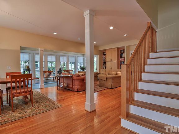 Great architecture transforms this unique house into a delightfully charming home with big personality.!! Mid Century Style designed by well known architects-Dixon & Weinstein!! Private,level home site on a cul de sac. LR with built ins.Spacious Master on main, sun filled kitchen with walls of windows. Two BRs, loft area and Craft /multipurpose room on upper level! PLENTY of storage, walk-in,floored attic above garage.Gorgeous Governors Cub!l Level n'hood-walk/bike Close to UNC,RTP,RDU,Duke,Southpoint