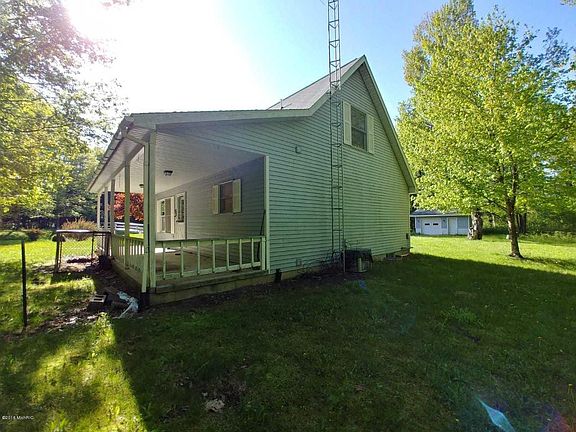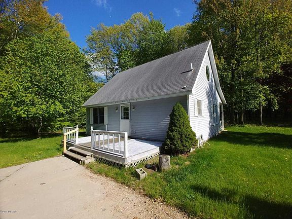 Handyperson special located just outside of town on 10 wooded acres. This home has a man-made pond with a beautiful bridge stretching across it. It is a 2 bedroom, 1 bath home surrounded by trees. Needs mostly interior renovation. There is a full basement, 2 garages (one with a workshop) and a barn. Close to lake access. A great cabin to enjoy Pure Michigan.