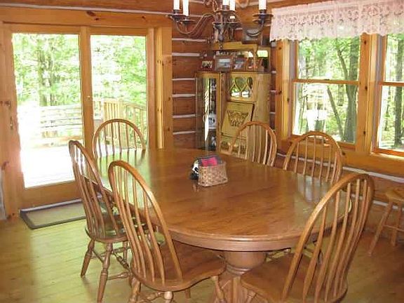 Beautiful rolling hardwoods! This full log home is situated in a private location with exceptional views from every room of this 40 acre parcel. Vaulted ceilings to the large open loft area, wood burning free standing stove, open living area. Just off the dining area you have access to the large deck. Main floor bath with jet tub, access from hallway and mainfloor bedroom. Upper level master bedroom has full bath, large closets. The walk out basement has a large family room with wood burning stove, office area, full bath, and large storage room with pantry area. This property is set up for horses with the barn and tack room, wired grazing area. A nice area for riding either on the property or through the country. 220 V Auto Guardian generator back up system. Relax on the large front covered porch. Such a beautiful log home with so many extra amenities!!! This is a must see home.