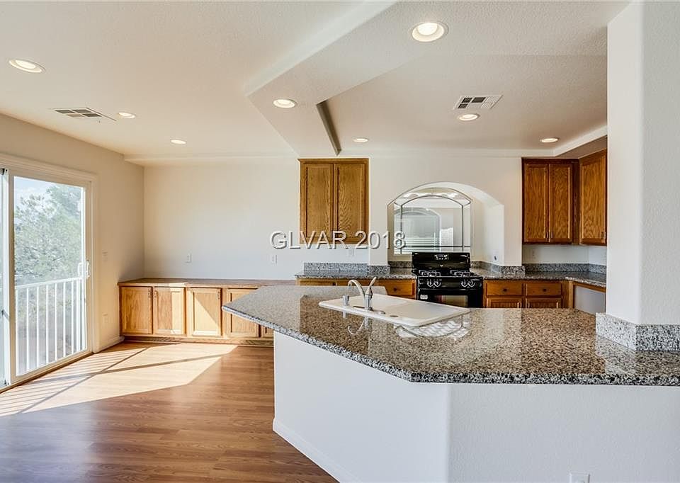 Built in 2007, this Las Vegas two-story offers granite kitchen countertops, a walk-in closet in the ground level master suite, and a two-car garage. Upgraded features include fresh interior and exterior paint. Common area maintenance is part of the HOA. Home comes with a 30-day buyback guarantee. Terms and conditions apply.