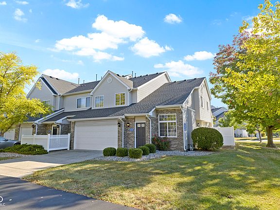 This delightful 2bedroom/2.5bath condo is in the perfect location in the middle of Fishers within walking distance to the Nickel Plate District Amphitheater and several restaurants! Walk to the Fishers Farmer's Market on Saturday mornings plus take in the free concerts during the summers and walk home!! All Appliances are included with this unit plus washer/dryer AND water softener too! Water Heater was just replaced this summer and interior is freshly painted throughout so it's ready to move in. Kitchen offers a breakfast bar area plus dining room space that walks out to a patio. Primary bedroom features private bath with walk-in shower and vanity. Hall bath has full tub/shower and second bedroom is a nice size too! Upstairs laundry closet is super convenient. Oversized garage offers storage space. No exterior maintenance as it's all taken care of! Great room offers gas log fireplace plus plenty of windows on the end unit for fresh light throughout and privacy too. Property is vacant and easy to show and sell!