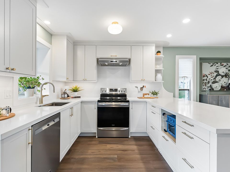 Corner lotCustom cabinetryQuartz countertopsCozy wood fireplaceUpdated flooring