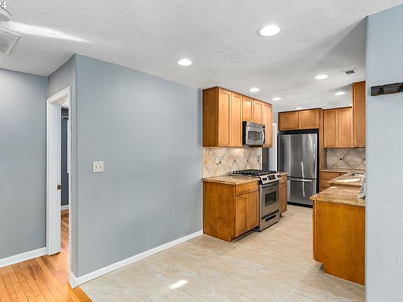Charming move-in ready one-level! This turnkey home offers ample natural light and the original hardwood floors. The updated kitchen is a chef's delight, boasting brand new LVP flooring, granite countertops, and stainless steel appliances. Enjoy the perfect balance of indoor and outdoor living with large covered porch and spacious fenced yard, complete with a cozy fire pit, garden space and chicken coop + fruit trees! Huge oversized garage can easily fit multiple vehicles or is perfect for a workshop or home gym. Nestled in a quiet neighborhood- great location near parks and shopping with easy access to Milwaukie, Downtown or the West Side! [Home Energy Score = 2. HES Report at https://rpt.greenbuildingregistry.com/hes/OR10048430]