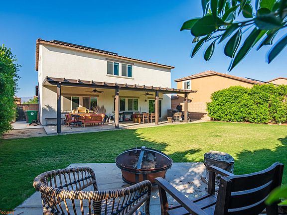 100% PAID OFF SOLAR PANELS! It is my pleasure to welcome you to 84425 Degas Ln. Located in the very desirable gated community of PRADO. This 4 bedroom 3 bathroom two story home is ready for its new owners. Property features, tile flooring and carpeting through out the entire house. The spacious open kitchen flows effortlessly to the living room and dining room. Upstairs you will find the bedrooms and a private loft. The spacious backyard provides lots of privacy surrounded by ficus trees with a covered alumna wood patio with built in lighting which provides ample shade during the day. The side of the home offers a covered shed for extra storage space. This home features a 3 car garage and desert front landscaping with paid solar panels. This home is an incredible value and wont last long!