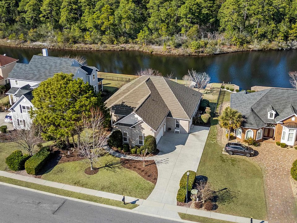 Welcome to 8443 Juxa Drive nestled on a premium 77' waterfront lot in the coveted Plantation Lakes community of Carolina Forest! This all-brick masterpiece features 4 bedrooms, 3.5 baths, and a private office room. Step into the grand great room, where 12' ceilings, gleaming hardwood floors, and a stunning wall of French doors create an airy, light-filled retreat. These doors open to a fenced backyard oasis featuring a private boat dock with water hookup, step down private beach, and breathtaking lake views perfect for serene mornings or lively waterfront gatherings. The heart of the home is a chef-inspired kitchen, with sleek granite countertops and prepped with a gas line for your dream range. The kitchen flows seamlessly into the inviting Carolina Room, wrapped in all-season windows that frame the lake's beauty year-round. The primary suite is a true sanctuary, offering tranquil water views, elegant tray ceilings, and a spa-like ensuite with a walk-in shower, jetted tub, and dual vanity. Also, on the main level of the home is a half bath for guests. Two additional bedrooms on the first floor level share a convenient Jack-and-Jill bath, while the upstairs suite comes complete with a private bath, huge walk-in closet, and additional flex space. Beyond the main living areas, this home is packed with premium extras: pre-wired for a portable generator, a fully equipped heated and cooled workshop for hobbyists or DIY enthusiasts, CAT5 and coax wiring for modern connectivity, and a pre-wired intercom/speaker system for effortless entertaining. Plantation Lakes amenities elevate the lifestyle with two sparkling pools, a clubhouse, tennis & basketball courts, playground, community boat launch & dock, and beach volleyball court. Conveniently located near all of the Grand Strand's finest dining, shopping, golf, award winning school districts, MB International Airport, and area entertainment attractions. Don't miss ~ come live the dream! Call the listing agent today to schedule your showing!
