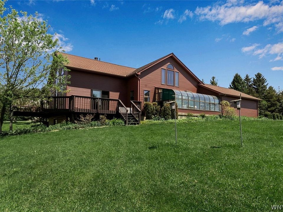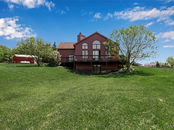 VRP Pricing - Seller will Accept Offers Between $399,000-$425,000. Custom Built, 2-Story with Loft overlooking Great Room on 5.8 Acres with Grape Vines and Views from Every Window. Great Room offers Oak HW floors, Stone Fireplace that doubles into 1st floor primary en suite. Main floor's open Concept for Entertaining boast Kitchen with Brookstone Cabinetry, Eat-In Space, Sunroom, Dining Room open to the Great Room. Wrap-around Deck to Enjoy the Outdoors. Bedroom(s) on every floor, Catwalk and Loft Overlooking a Wall of Windows to the Views. Walkout/Walkup Basement with Large Rec-Room, Pellet Stove, WorkShop, Utility Room. On property Outbuilding. This is A Must See to appreciate the location - Summit of Kissing Bridge Ski Resort sits at the end of the street's cut de sac. Amazing Opportunity to get a real piece of the south towns and make this house your next home. Opportunities for Horses, AirBnB and more! PLEASE NOTE: SELLER IS ACCEPTING OFFERS THROUGH 11/17/2021.