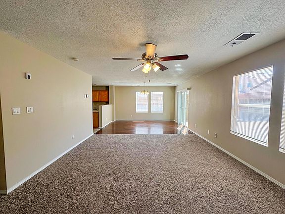 This 2 story 3 bedroom, 2.5 bath home in the Tierra Oeste neighborhood is waiting for you to make it yours. Clean and move-in ready with fresh paint and new carpet. The living and dining areas are open to the kitchen. All bedrooms are on the upper level including the good sized primary bedroom. Quick access to I-40 and located within a mile of shopping and restaurants.