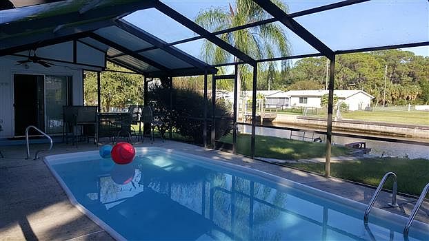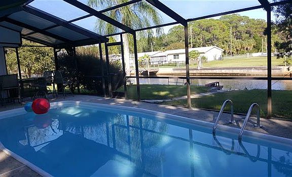 Lovely furnished waterfront 3/2/1 with Pool offers it all! Backyard canal with boat ramp and direct Gulf of Mexico access! Seawall, boat dock, boat ramp, in-ground screened swimming pool, updated kitchen with stainless appliances, ceramic tile floors, spacious utility shed, and all located on a private, quiet street. Open floorplan with ceramic flooring with carpeted bedrooms, loads of closet space. Screened-in patio area with an in-ground pool! MONTHLY POOL SERVICE INCLUDED IN RENT. 6 month and 1 day rental is $1450/month, not including utilities.