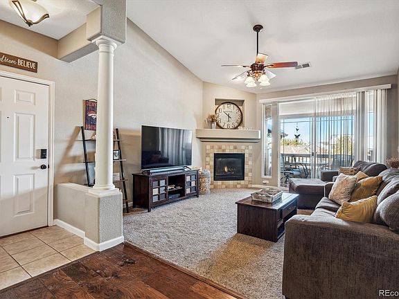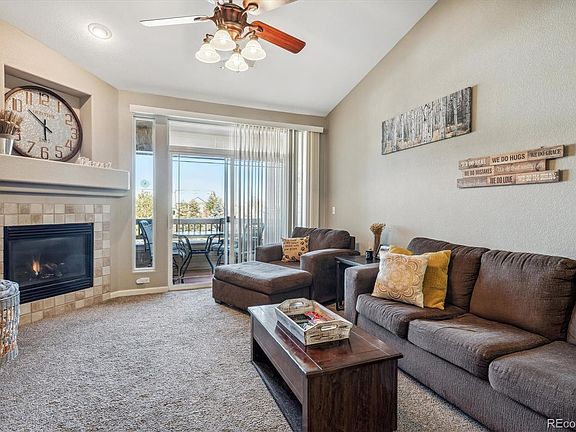 This beautiful 2 bedroom/2bath home boasts a spacious great room with a vaulted ceiling and a cozy gas fireplace, providing the perfect space to unwind after a long day. You'll fall in love with the covered balcony that offers a perfect view of the pool and clubhouse, making it an ideal space for outdoor relaxation. The laundry room also offers ample storage space for your laundry essentials. The washer and dryer are also included, making laundry day a breeze. The kitchen is a must-see feature and it comes with stainless steel appliances including the refrigerator and a great bar counter space, perfect for preparing meals and entertaining guests. The dining area is conveniently located just a few steps away, making it easy to enjoy delicious meals with family and friends. The primary bedroom is a haven at the end of the day, featuring a large walk-in closet and a vaulted ceiling that creates a sense of spaciousness and airiness. Attached to the primary bedroom is the full primary bathroom that has dual sinks, providing enough space for two. The home also includes a covered parking space in the carport just out front (#245). This home is ideally situated in a fantastic location with easy access to parks, trails, shopping, and C470. Don’t miss this great opportunity to call this wonderful house your own.