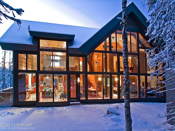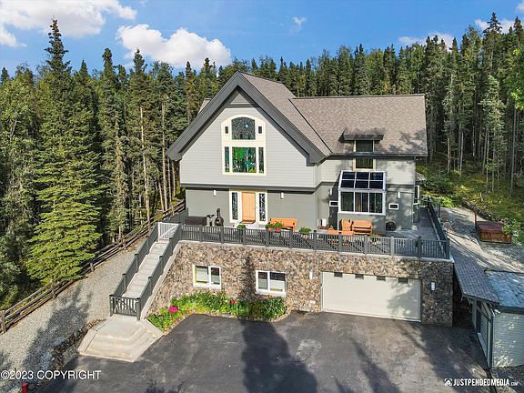 Introducing the epitome of homes in Anchorage and Alaska. Never before offered to the market, this is a truly rare opportunity to acquire a custom luxury home of the finest caliber on four beautiful wooded acres in south Anchorage.Retreat into a secluded haven surrounded by trees, where the tranquility of nature and a serene atmosphere awaits, yet be close to schools and anywhere in town.A featured gem amongst the most architecturally magnificent homes in a national publication, this timelessly designed residence is crafted with the utmost attention to detail. No expenses were spared, from the open steel I-beam construction and suspended glass-walled rooms, the German limestone fireplace and Brazilian Verde Marinace granite, to the stunning three-story locally crafted stained glass window. A harmonious blending of natural beauty outside with an air of modern elegance within, this home will awe and inspire, with its wood, stone and glass walls, floors and ceilings. Originally intended for nine homes to complete the Sahalee neighborhood, this developable property abuts Far North Bicentennial Park, a 4,000 acre wilderness playground. Enjoy over 100 miles of trails from your doorstep. And for life in Alaska, enjoy the ample paved parking spaces and sheds for toys, boats, RVs and more, not to mention a massive 1,200 square foot garage. You must see this home in person to appreciate the exquisite qualities and all that it has to offer. It doesn't get any better than this. A Jon Hawkinson and Bruce Williams masterpiece.