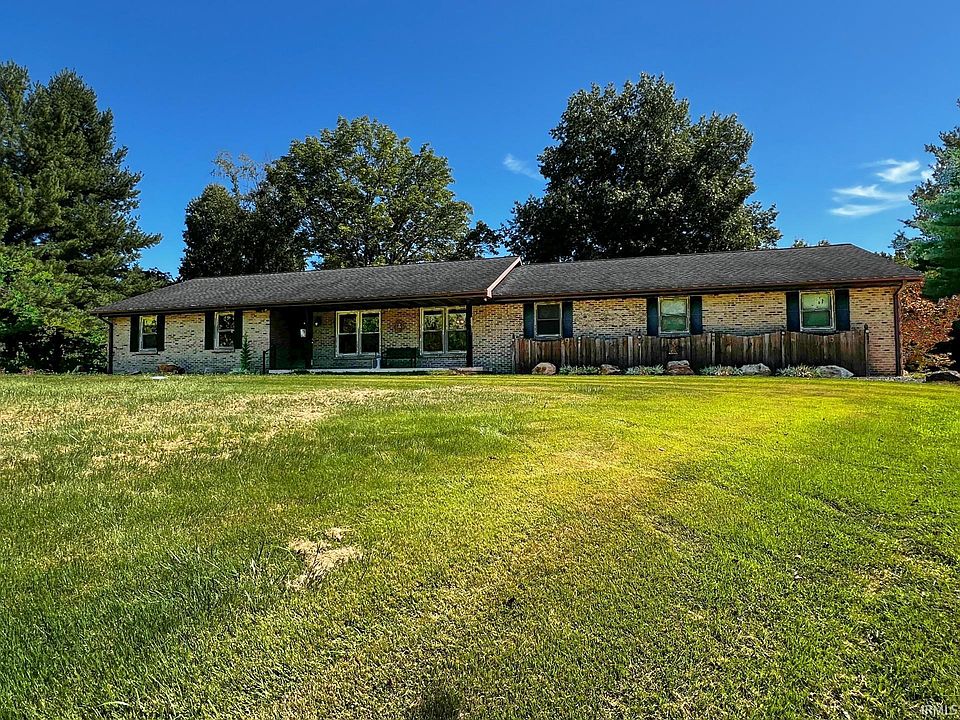Nestled on a sprawling 2.92-acre lot on the serene Northwest side of Evansville, IN, this charming one-story brick home offers both tranquility and convenience. Built in 1987, this well-maintained property features 1,712 square feet of living space that includes three bedrooms and two bathrooms, making it ideal for anyone seeking space and comfort.The heart of the home is the kitchen, equipped with stainless steel appliances, an abundance of cabinets, and a breakfast bar, adjacent to a cozy dining area. The living room and family room provide ample space for relaxation and entertainment. Recent updates include new vinyl plank flooring installed last year, adding a modern touch to the home's aesthetic.Additional highlights include a formal dining room, a three-car garage, storage shed, and a 21x31 pole barn, perfect for additional storage or a workshop. Outdoors, the beautiful covered porch offers a peaceful retreat overlooking the expansive green surroundings. The property also features a whole house generator, ensuring comfort and convenience year-round.This home is a perfect blend of country charm and modern amenities, offering a unique opportunity to own a significant property in one of Evansville’s most desirable areas.