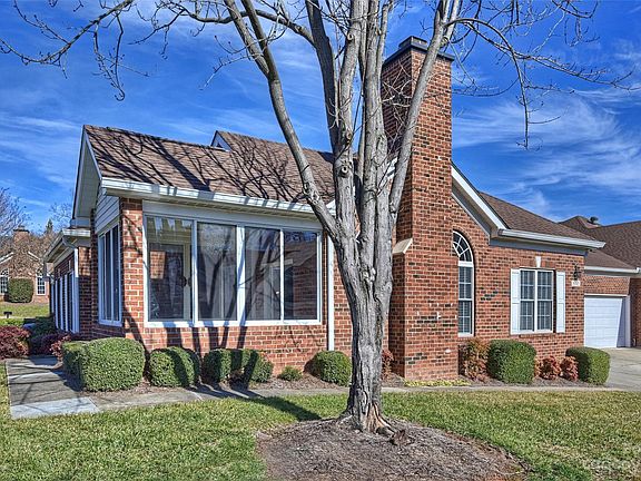 Perfect place to call home! 8445 Windsor Ridge Drive is one level living at it's finest--charming and well maintained 2 Bedroom, 2 Bath Patio Home located close to Blakeney, Stonecrest and Ballantyne Village. Most of the home has hardwood laminate flooring--Primary Bedroom has carpet and Bathrooms have tile. The Primary Bedroom has a lovely tray ceiling, plenty of light, a walk in closet and an en suite Bath. Great flow between the Great Room with Fireplace and the Dining Area. The Kitchen is so sharp with the black and white contrast--gas stove and spacious Pantry. The 2 Car Garage is right off the Kitchen and it has a useful Utility Sink. The unheated Sunroom will provide a warm sunny retreat for most of the year. Enjoy the wonderful Pool, Fitness Center and the Club House. HOA covers water, sewer, lawn maintenance, roof, and shutters.