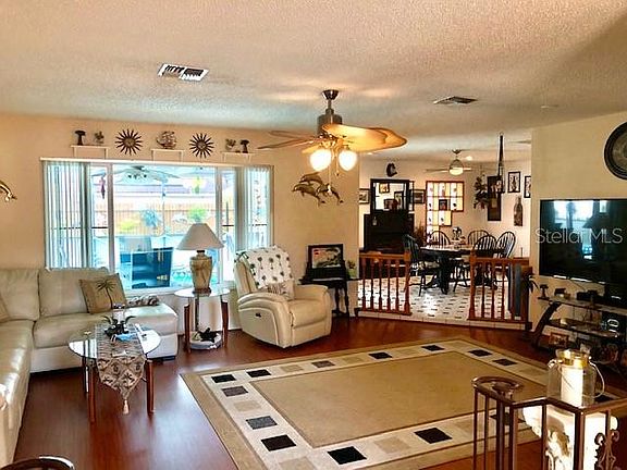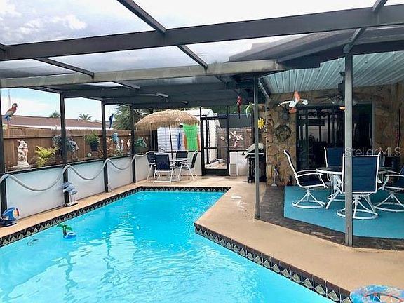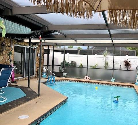 This pool home is over 1,500 square feet with 2 bedrooms, 2 bathrooms, and a 2 car garage. Upon entering the home you walk into a great room with a wet bar ready for entertaining. Right off the great room is the kitchen and dining room. The master bedroom has its own private bathroom and large sliders overlooking the screened in porch and beautiful salt water pool. The backyard is fenced, giving you privacy when entertaining or just relaxing in your pool. The pool area has plenty of space for seating and layout chairs and the pool has a heater so you can swim year round.