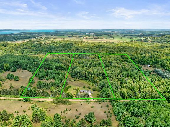 Don't miss the opportunity to own this exceptional 30-acre estate, ideally situated just one mile from the stunning Torch Lake and the picturesque town of Alden. Tucked away in nature, this property features a 2,074 square foot, 3-bedroom, 2-bathroom walkout raised ranch with Generac generator. Step onto the multi-level back deck, which offers a captivating countryside view. The heart of the home is the spacious kitchen, perfect for entertaining. Adding to the allure, the primary suite on the main floor boasts not only 2 walk-in closets but also a breathtaking view accessible through the back-deck slider. Spanning three ten-acre parcels, the property encompasses cleared rolling fields, mature evergreen and hardwood forests, and a tranquil sandy creek meandering through the backyard of the residence. This exceptional offering also includes a 10x16 shed, two pole barns (30x24 and 40x30), and a detached, generously-sized two-car garage with an additional second-story level, providing ample storage space. Don't let this opportunity slip through your fingers.
