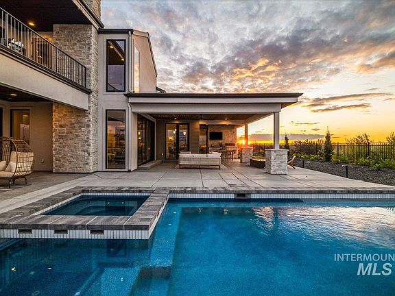 Welcome to The Caprese, this years Spring Parade Home by legendary Iron Oak Homes, where luxury, design, & functionality collide in the most spectacular way! This home isn’t just a residence, it’s a statement! Let’s talk outdoor living. A jaw-dropping backyard experience featuring a sparkling pool, full outdoor kitchen, fire features, a sprawling covered patio, & an incredible second-level balcony with unmatched panoramic views of the Boise Foothills & Bogus Basin. The interior? Pure sophistication! This kitchen is designed for next-level entertaining, featuring all Thermador appliances, anchored by a massive island & designer butlers pantry! It seamlessly flows into the great room & dining area. The private primary suite is spacious & inviting, with direct access to its own serene patio, complete with fireplace! The primary bath? Chic, elegant, & complete with a massive walk-in closet that connects directly to the laundry room. Don't miss the 75-foot-deep RV garage! That’s room for the RV & the truck!
