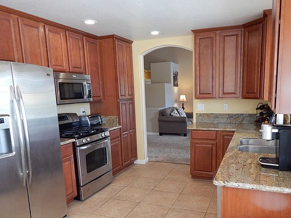 Open House Tonight, Thursday Sept. 10th from 5pm to 7pm. Wow!! Remodeled kitchen includes granite counters, new cabinets and stainless steel appliances. Bathrooms have also been upgraded. Corner lot with private backyard and covered patio. Low maintenance stucco exterior and tile roof that should last a lifetime. Cozy fireplace in living room. 2 car garage. Energy efficient dual pane windows. Central heat and a/c.