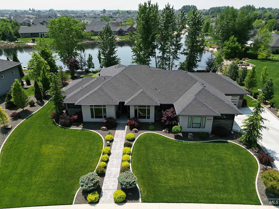 Immaculate Custom Executive style home. Truly the definition of Better Than New and Move In ready! Fully furnished home. Inviting entry opens to the spacious living room with picture windows overlooking the yard and lake. Stone gas fireplace. . Remote operated blinds. Engineered hardwood flooring. Oversized kitchen with quartz counters, soft close Beech cabinets and Bosch black stainless appliances. 6x 14 pantry. Eating area with additional picture windows for the views of the lake. Private master suite, large master bath w/walk in shower and 10x12 closet. Master has it own 8x14 covered patio. Office/formal dining rm could be 4th bedroom. Large bedrooms each have their own bathroom and walk in closets. 1/2 bath for guests. Foam blown in insulation and conditioned crawl space. Professionally landscaped from road to beach. Private beach. Relax on your 16x25 covered patio and listen to the 2 nearby waterfalls cascade into the lake. Lake has
