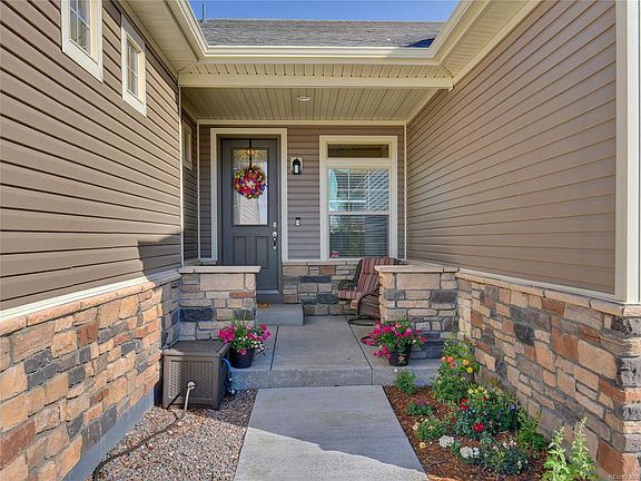 Ranch-style home w/ main-level living, first-level Master Suite, full basement. Better than new w/ numerous upgrades, central air, quartz counter tops in kitchen and butler's pantry, ceramic glass back splash, LED can lighting, chandeliers/upgraded pendant lights, sliding frosted glass barn door in master bath, 9-foot ceilings up/down w/ 8-foot doors on main level, upgraded bathroom fixtures. 60% finished basement w/ ability to add media room/additional bedrooms, Dual-Zone Furnace, Whole House Humidifier, Water Heater w/ Recirculating Pump, Radon Mitigation System, Sump Pump, RING Doorbell, HOA-approved Landscaping in place. Banning Lewis Ranch offers the award-winning K-8 Banning Lewis Ranch Academy, New Schools, Club House managed by YMCA w/ 24-Hour Fitness Facility, Outdoor Heated Pool, Splash Park, Tennis/Pickle Courts, Dog Parks, Amphitheater, 50 acres of Hiking Trails/Parks. HOA includes trash removal/recycling services. Pikes Peak Views. ~60 miles to DTC - easy commute.