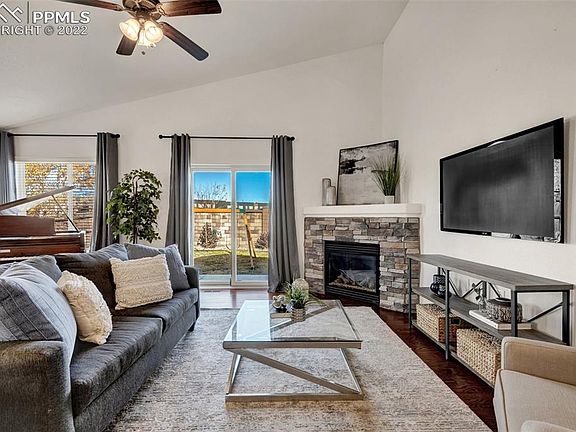 Beautiful ranch 5 bedroom, 3 bath, 3 car garage Everest model has had one owner, is fully updated and has been meticulously maintained! Vaulted ceilings, solid wood floors, stunning stone gas fireplace and gorgeous windows with natural light welcome you home! This exquisite home was upgraded with brand new luxury class 4 shingle roof (2022), new furnace and central A/C (2021), new water heater (2020), and in 2019 had a full interior remodel to include luxury quartz kitchen countertops, new carpet throughout, new interior paint, all new kitchen appliances, and new Anderson sliding glass door! Main level living with large open-concept living area, three bedrooms, two bathrooms, laundry room with washer and dryer all on the main level! The large master suite has vaulted ceilings, attached 5-piece master bathroom with soaking tub, quartz counter tops, dual vanities, walk-in spa-shower with bench to sit and a large walk-in closet! The kitchen includes additional cabinetry, luxury quartz counter tops, new appliances, gas hook-up, large island with seating and pantry! The 6 foot fenced in backyard has been enhanced with an extended wrap around patio and sidewalks for easy access to both side gates. It is a haven to relax and retreat and enjoy the gorgeous Colorado outdoors! The finished basement features a huge living area, two large bedrooms, a full bath & large storage room! Oversized 3-car garage includes added built-in storage, workshop area & an access door to the backyard! The neighborhood includes beautiful parks, wonderful schools, walking distance to Grand Peak Academy and is conveniently located near Woodmen with easy access to the Powers corridor, military bases, shopping & entertainment! Move-in ready & one you will want to see!