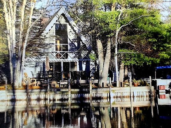 105' Crooked River Frontage only 3 minutes to Burt Lake. Rustic two bedroom, two bath Chalet with loft. Wood burning stove, Newer Heat pump/Central air conditioning, New septic system. Beautiful view of river from both levels. Newer fenced yard, Hot Tub, Artesian well. 1- boat well plus small boat /jet ski launch. Three outbuildings for storage.