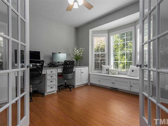 Established neighborhood in NW Raleigh.Enjoy the delights of entertaining or long afternoons lounging in the grand sunroom adjacent to the stone patio & kitchen w/ large island and room for bar seating, granite countertops, tons of cabinet space, 2 pantries.Built-in shelving in office & livingroom. Remodeled master bath w/ freestanding Bain tub & spa-like tiled shower. Master closet w/ adjustable shelving for organization.Fenced-in corner lot with storage shed. Nest thermostats & smart sprinkler system.