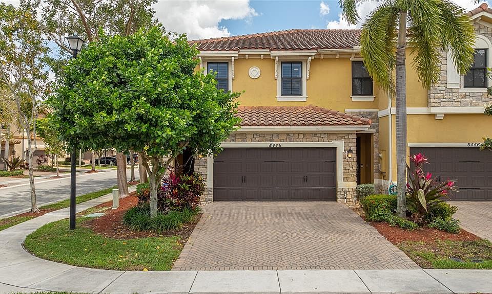 Your New Home is Ready for You ! Take a look at this Fantastic Immaculate Light & Bright (Alhambra Model) corner unit in Town Parc @ Mira Lago in Parkland. Impact windows & doors, Wood tile 1st floor, All 8 Ft Doors. Plantation shutters throughout. Fantastic Primary suite with enormous walk in closet. Split plan for privacy, large private fenced backyard. Residents of Town Parc have access to all 3 luxurious resort-style Community facilities including Mira Lago & Cascada. Amenities included: pool & playground as well as guard gated private community in Town Parc, All Access to Mira Lago & Cascada Clubhouses, pools, Tennis, pickleball, fitness and more WOW Welcome Home !!!