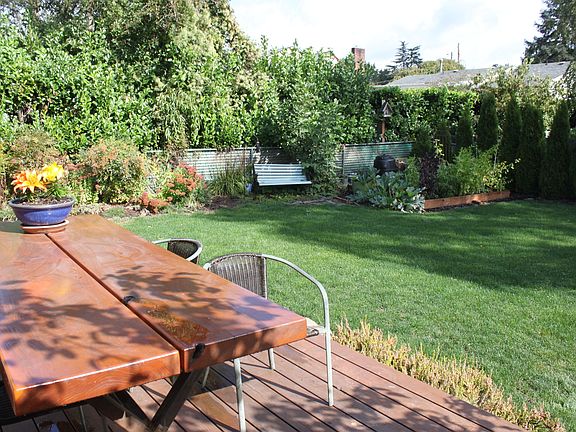 Light-filled, well-maintained home with quality updates. Large master suite with custom closet & bath. Reclaimed wood was used in master suite remodel and adds warmth and character. Newer windows, wood fireplace insert and sewer line. Hard wood floors, french doors to private deck, fenced yard, garden shed/greenhouse, fish pond, covered patio, fire pit, dog run, established gardens with producing asparagus beds, raised beds, fruit trees (Asian Pear/Fuji apple/honey fig), healthy rose and tulip beds, blueberries, marion berries, and many perennials. Near Spring Water bike/walk trail & future Tacoma St. Max Park & Ride (eta 2015).