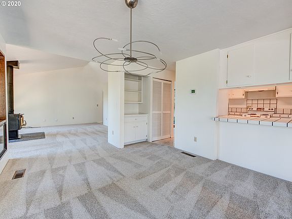 - RoomLivingRoomFeatures: Wall to Wall Carpet, High Ceilings, Wood Stove