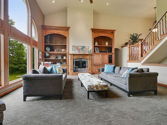 Custom built home features beautiful windows which afford great views and lots of light. Spacious kitchen with walk in pantry, large island, granite countertops, newer stainless steel appliances. Large dining area with windows to bring the outside in!! Patio doors off of dining room to outside patio. 20 foot ceiling in great room with built in entertainment center, master suite with walk-in closet, luxury bath with dual sinks and tiled walk in shower. Office has coffered ceilings. 1st floor laundry room, lower level family room & finished 19 x 30 "flex" room. Finished upper level loft and bonus room. 3 car attached garage.