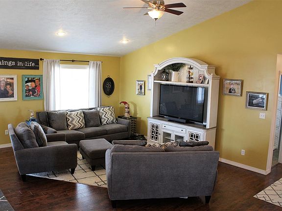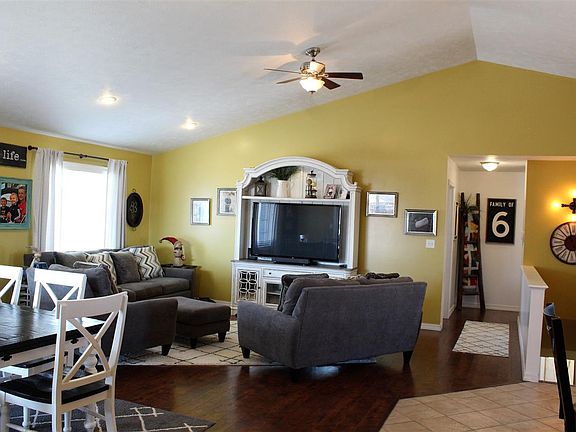 Beautiful acreage close to town! Open floor plan with gorgeous views out of every window. Features large great room, main floor laundry, 5 bedrooms, 3 baths, walk out basement with a family room that can entertain all ages. Lower level has a multi-media room for all your gaming or computer accessories. Covered deck overlooks beautiful yard. Storage galore in the 24x48 cemented outbuilding for all your toys.