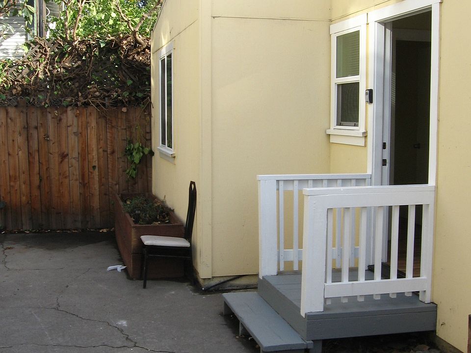Cute Cottage in rear .... Behind a 2plex. All nicely redone. Wood floors. Stainless & Stone kitchen. New Bath. Yard area. Very cozy place to call home. Ready for you to move in!! 1 cat allowed only, no dogs. Must have renters insurance. Bike racks and laundry hook ups for your stack equipment. OPEN HOUSE SAT 1:30 pm for 30 mins. WED 5pm Applications avail at the open house of online at EastBaySpaces.com We need proof of income and a $20 credit check fee. Along with completed application for consideration. 1 year Lease then rolls to month to month. Must have renters insurance. Resident pays Trash/water/EBMUD fees and PGE No Dogs.