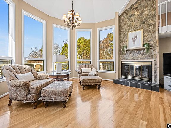 The luxurious primary suite on this floor offers a private sanctuary with vaulted ceilings, abundant natural light, and direct deck access. A separate flex space within the suite is ideal for an office or reading nook. The spa-like master bathroom is thoughtfully designed with a Jacuzzi tub, a separate standing shower, a double vanity, and stylish fixtures.