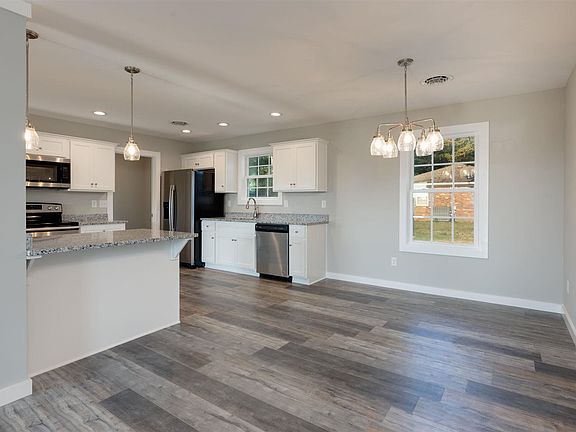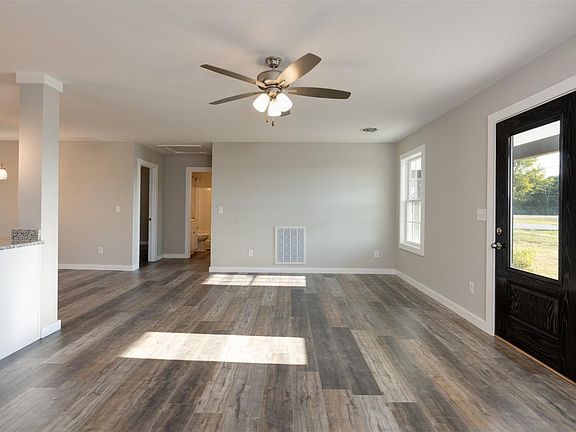 Great curb appeal! Well-planned new construction home with all luxury vinyl tile, granite & soft close cabinets, custom tile shower & decorative open shelving in master suite, walk-in closet & open/split floor plan. Excellent neutral color palate & stylish "Farmhouse" black & white brick/vinyl exterior. Covered front porch extends the length of the home for afternoon sunset views.