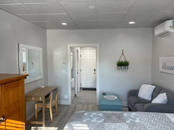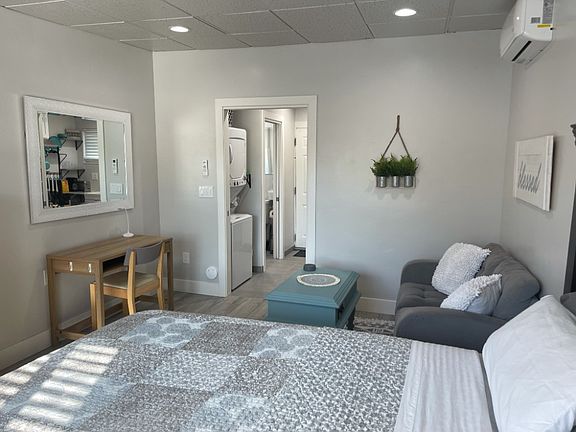 This is a NON furnished studio right in the heart of Santa Rosa! It is attached to a main house (another rental) but has separate entrance, in unit washer/dryer, air conditioning, and designated off street parking. It has been tastefully remodeled with tile and laminate flooring and has great natural light! It is walking distance to public transportation, Safeway, banks, UPS Store, restaurants and much more! Sorry, no pets! 1 year lease. Renter is responsible for a portion of the following utilities: PG&E (gas/electric)- divided based on square footage of studio/other units City of Santa Rosa (water and sewer)- divided by # of total residents supplied by water meter Recology (trash/recycle)- divided by # of total residents using the receptacles Internet shall be supplied by the renter for their exclusive use. 1 off-street parking space is allocated to the studio. Guests should park on the street.