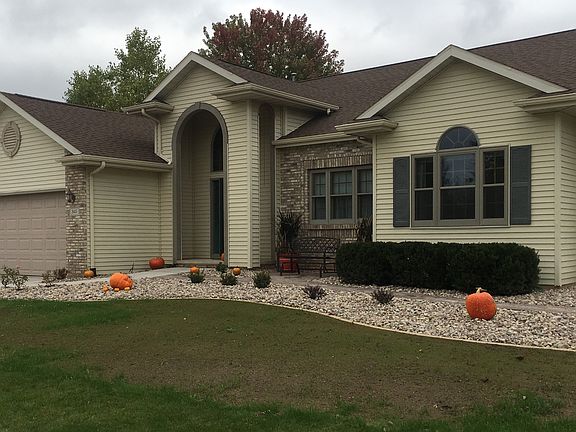 Open concept floor plan, custom raised panel cabinets throughout kitchen, dining and living rooms. Tray ceilings/pillars, 9’ ceilings in living area and bedrooms. 12’ ceiling in foyer. Open railing to basement. Finished lower level includes L-shaped rec area, office w/egress window. Heated 3 car attached garage w/built-in cabinets. Private fenced-in backyard with heated 18’ round pool and deck. Recently landscaped front yard, new roof in 2015, new drive and walkway in 2017. Other improvements: power-vented hot water heater, underground rain spouts, hardwood and ceramic floors. Conveniently located between Appleton and Manitowoc, and 30 minutes south of a Green Bay.