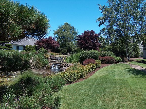 Beautiful home in Woodburn on the OGA Golf Course. This home features an open floor plan with granite counters in the kitchen, eating bar, cherry cabinets, and pantry. In the living room you will find a cozy gas fireplace, built-ins, and hardwood floors. Outside is a covered patio, overlooking Glatt Pond which includes a water feature, fenced yard, and mature fruit trees and rose bushes.