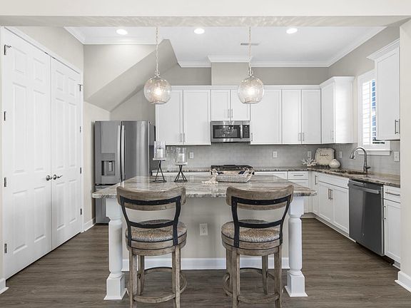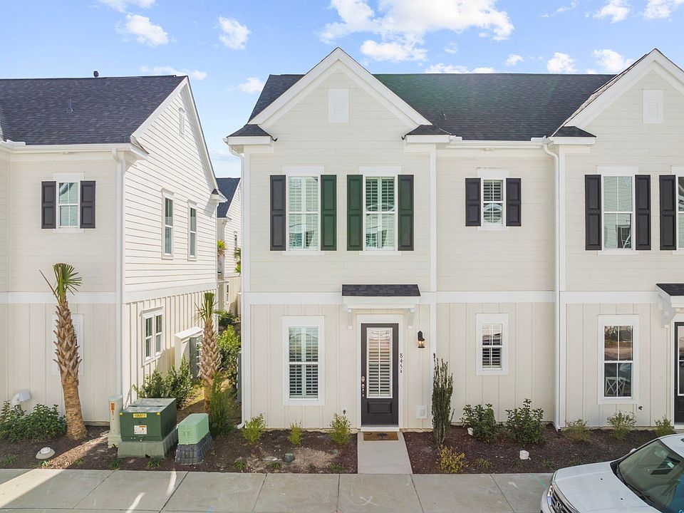 Welcome home to this better than new townhome in the heart of The Market Common in Myrtle Beach. This 2 bedroom, 2.5 bath END UNIT townhome is beyond move-in-ready with upgrades galore. Upon walking in the front door the whole downstairs is open and stunning with plenty of natural light and Plantation shutters throughout. The kitchen has upgraded granite countertops, stainless steel matching appliances including a natural gas range, a single bowl sink, plenty of white soft close cabinets, tile backsplash, decorative pendant lights, and a unique feature of a double oven. There is space on the island for barstools or the option of dining in the dining nook. There is also a double door pantry and half bath on this floor. Crown molding is featured throughout  the first floor and there is a door off the living room that leads to the back patio where you can enjoy some fresh air. The luxury vinyl flooring is all downstairs, in both the bedrooms, matching hardwood stairs, and tile in the wet areas...there is no carpet in this home! Upstairs are the 2 bedrooms each with their own ensuite. The owners' bathroom is spacious and features a double vanity and a walk-in tile shower with a frameless shower door. The owners' bedroom also has Plantation shutters, ceiling fan, and large walk-in closet. The second bedroom could be a bedroom or a home office. It has its' own bathroom with a tub/shower combo. The washer and dryer are on the same floor as the bedrooms and convey with the home. There is outside attached storage and a tankless hot water heater. Because it is brand new, there is a fantastic warranty that would transfer to the new owner. All the furnishings are brand new and negotiable, it really is turn key ready.  Living in this community there is easy access to the beach, dining, shopping, and entertaining... all is a golf cart ride, bike, or walk away! The HOA includes the Market Common pool that features a large pool, 2 hot tubs, a lazy river, kiddie pool, ping pong and gym. Trails, bowling, a dog park, a movie theater, playgrounds, and gyms are all just some parts of living the lifestyle of The Market Common. Schedule your showing of this immaculate home today!