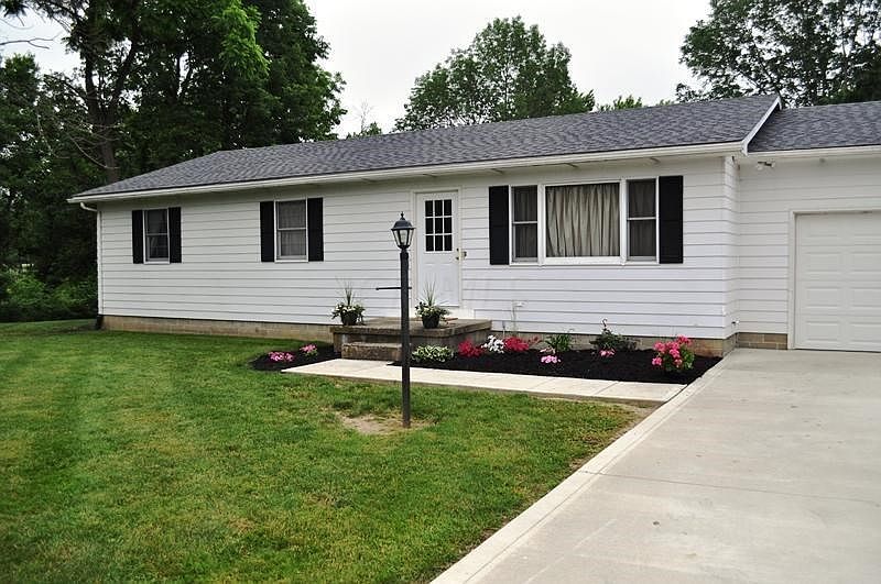 Gorgeous home that's been well maintained and quality built. Walk into the entry that opens to your living room. The spacious kitchen is equipped with lots of counter/cabinet space, eating space AND breakfast bar. The kitchen opens to your family room boasting a gas log fireplace and walks out to your concrete patio overlooking your backyard. Easy entertaining with this layout and patio area. Spacious bedrooms and 1.5 baths on the main floor. Finished rec room and/or 2nd family room in the lower level with built-in cabinets and shelving - this adds much living space as well as another full bathroom. This home is situated on 1.72 acres - easy commuting to I70 and/or SR33. Concrete drive close to the house with concrete turn around/parking spaces. Welcome Home!