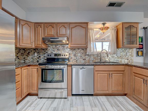 Beautiful updated home in a great Rio Rancho location on a quiet cul-de-sac! Lots of great updates to this home which include refrigerated air/furnace combo, ceramic plank flooring, interior paint, stainless steel appliances, granite countertops, double pane windows, and new carpet just put in the bedrooms 11/28. This light filled home has 3 bedrooms, 2 baths, and a 1 car garage. Plenty of space for the whole family! Front & backyards have SW landscape and a large covered patio with a huge backyard. Great for entertaining with friends and family! Move in ready! NO HOA! Near breweries, restaurants, Intel, and shopping!