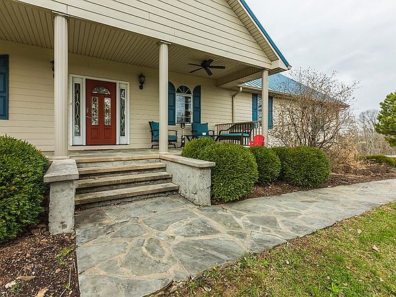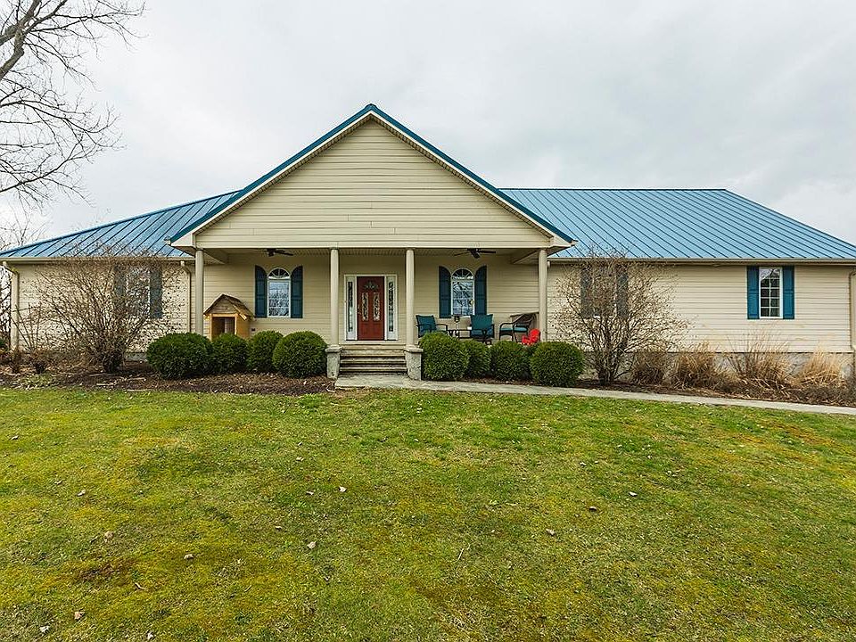 Gorgeous ranch nestled on 18 acres with views to die for! It it has an open floor plan with kitchen island, impressive stone fireplace, and split bedroom concept! Spacious master ensuite with large shower/tub combo! Geothermal and hardwood floors throughout! Wrap around deck perfect for entertaining or taking in the wildlife and sunsets! There is a spring fed pond and stream, two garages, and a great barn with stalls! This is country living at it's finest! Perfect for a family or someone needing one level living! Do not miss this one!