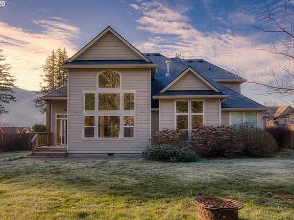 Beautiful custom 3 bed, 2.5 bath home with territorial views of the Gorge, in the coveted neighborhood of Angel Heights. The open concept kitchen features an island, gas stove, and stainless steel appliances. Hardwood floors and vaulted ceilings throughout the living room. The master bedroom has a master bath with two sinks, a jetted tub, and a walk in closet. This home also has a laundry room, formal dining room, breakfast nook, and an office. Great back yard for entertaining.