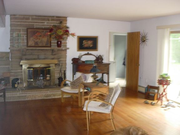 Charming Nugentown home on 1.3 acre wooded lot surrounded by nature! This home features include a huge family room with brick fireplace, bright and sunny with lots of windows and sliders overlooking the nature in the back yard, country eat-in kitchen with plenty of counter and cabinet space, beautiful cherry cabinets, large formal dining room, large formal living room. first floor laundry. Upstairs there are two generous bedrooms plus a huge master suite. Gorgeous hardwood floors throughout the home. Custom antique stained glass front door. Brand new high efficiency gas furnace. two car attached garage. This home was very well maintained....better hurry this is a great opportunity - make an offer today!